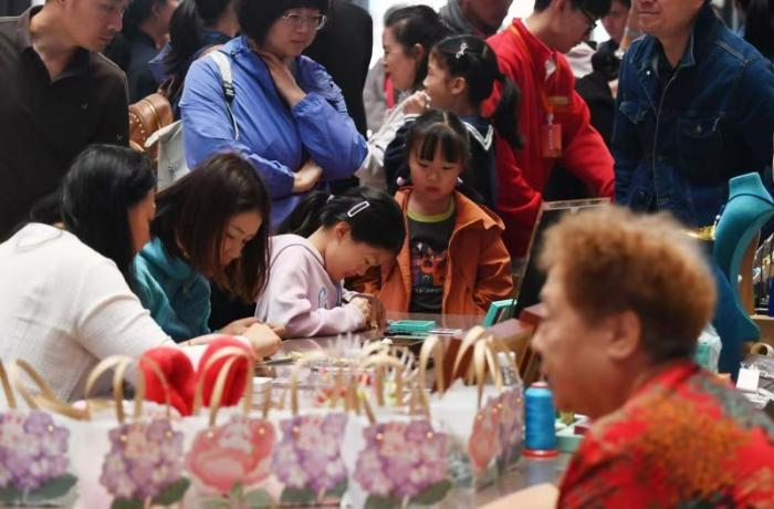 活动当天,非遗馆中央大厅特别设置的“中秋主题非遗手工艺体验区”成为现场最受观众欢迎的“打卡点”。