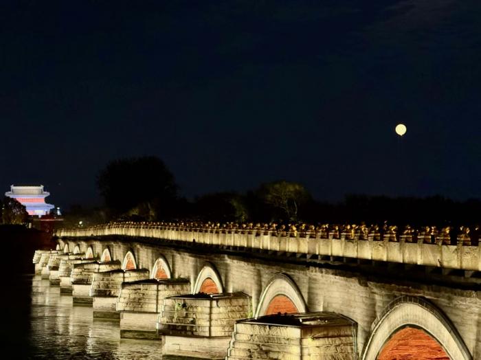 美丽北京|卢沟晓月映中秋 市民夜游赏月色