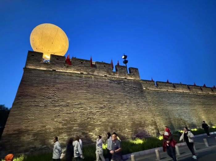 国庆中秋双节期间,宛平城再现“卢沟晓月”盛景,直径5米的“光影月亮”从西南城墙缓缓升空,与500面迎风招展的五星红旗、“卢沟醒狮”交相辉映,日均吸引4万余人次游客,掀起文旅热潮。