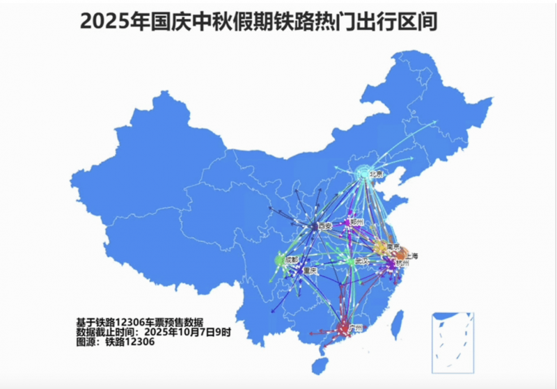 各地铁路部门全力应对返程客流高峰,在热门方向和区间及时增加运力投放,落实便民利民惠民举措,努力满足旅客出行需求。沈阳局集团公司加开旅客列车154列,对北京、大连、珲春、丹东等方向84列动车组列车重联运行;长白山站为重点旅客提供“一站式”服务,最大限度提供出行便利。太原局集团公司加开旅客列车67列,重联动车组列车68列,增加始发座席6.78万个。呼和浩特局集团公司鄂尔多斯、乌海站候车室内设置周边景点路线展板,组织专人发放旅游宣传册,方便旅客游览成吉思汗陵、响沙湾、乌海湖等热门景点。郑州局集团公司加开去往北京、上海、青岛、武汉、重庆、杭州、昆山等热门方向旅客列车109列,其中开行北京、上海方向夜间高铁5列。上海局集团公司加开长三角地区前往南昌、武汉、广州、郑州等热门方向及管内旅客列车399列,重联动车组列车324列;上海、上海虹桥、上海南、杭州东、杭州西、南京南、合肥南等车站候车室10月7日、8日实行通宵开放,为乘坐夜间高铁的旅客提供舒适候车环境。南昌局集团公司加开前往广深、沪杭等热门方向夜间高铁57列;上饶站、景德镇北站在出站口设置了智能行李寄存柜,游客扫码即可寄存行李,实现轻松出游。武汉局集团公司在汉十高铁、郑渝高铁、汉宜铁路等线路和成渝、沪杭等热门方向加开旅客列车292列;积极服务襄阳2025国潮音乐嘉年华活动,在武汉至襄阳间开行夜间高铁11列。广州局集团公司加开深圳、长沙、武汉等方向动车组列车436列、普速列车80列;广州南站、深圳北站、长沙南站等客流集中大站开启全部出站通道,提升客流高峰时段旅客出站效率。南宁局集团公司在贵广、南广、柳南、贵南高铁加开夜间高铁60余列。兰州局集团公司加开西安、天水、峨眉、乌鲁木齐、敦煌等方向旅客列车36列,对前往北京、杭州、上海等方向30列动车组列车重联运行,加挂普速列车车辆125辆。乌鲁木齐局集团公司加开去往重庆、喀什、和田、阿勒泰、克拉玛依等方向旅客列车65列,重联疆内热门方向动车组列车37列。乌鲁木齐、哈密、奎屯等车站增派引导力量,动态优化旅客进出站流线,设置急客“绿色通道”,提升旅客出行体验。