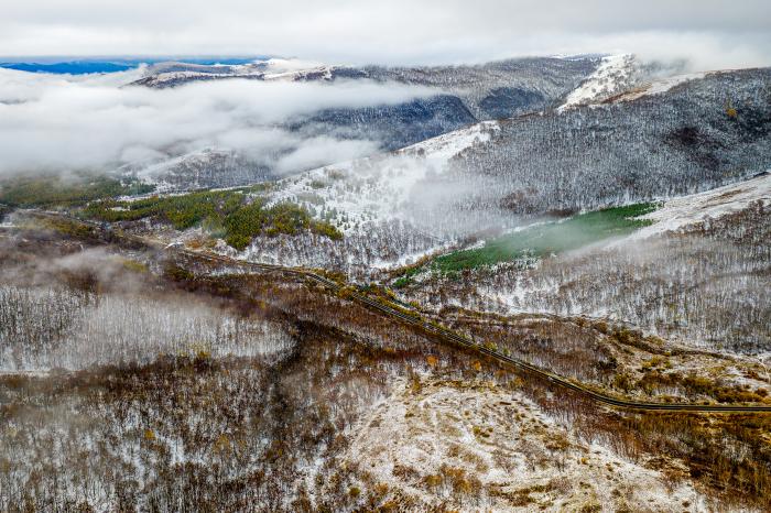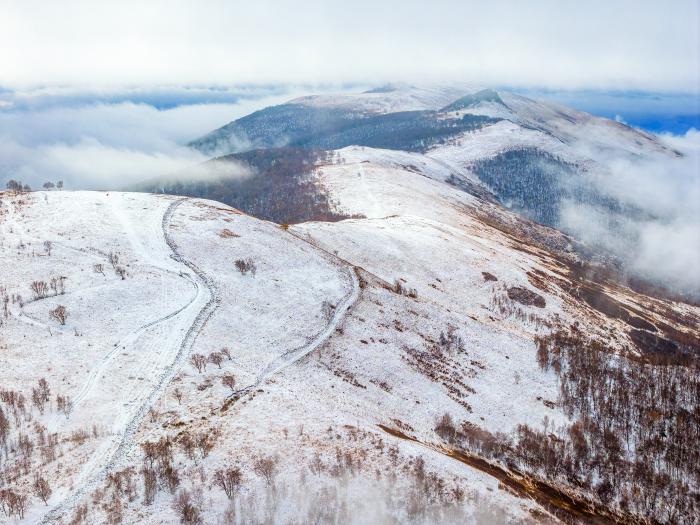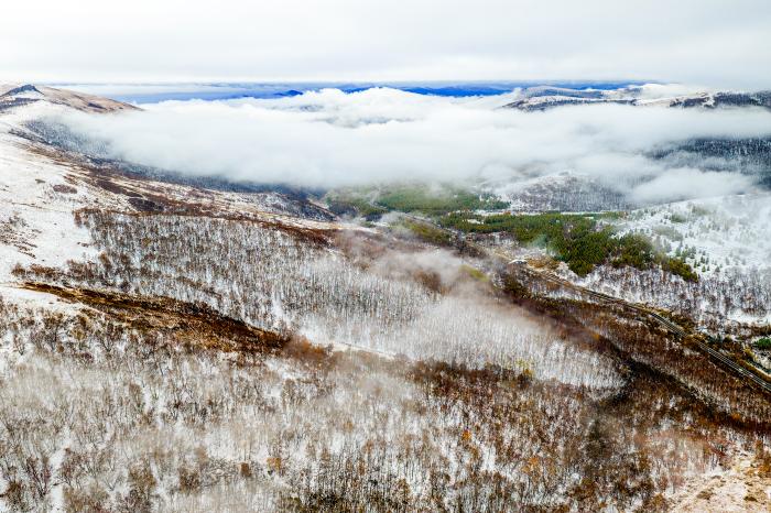 日前,内蒙古赤峰市克什克腾旗迎来降雪天气。