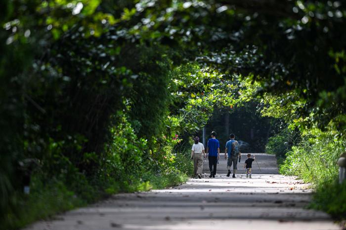 10月2日,游客在海南昌江海尾国家湿地公园游玩。
