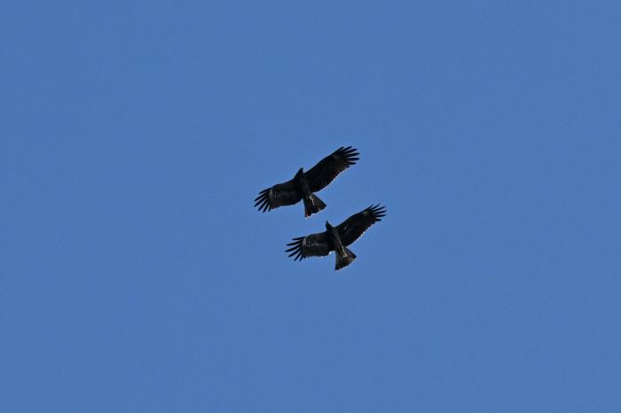10月2日,两只黑鸢在海南昌江海尾国家湿地公园上空追逐。