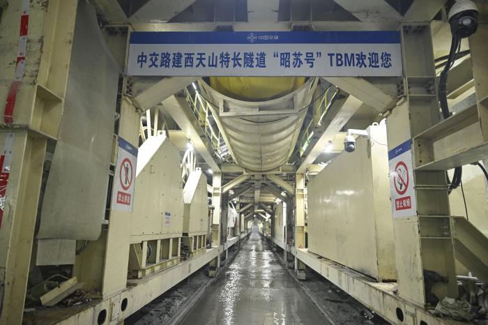 该项目于2023年6月动工,计划于2027年10月底完工。项目建成投运后,从伊宁市到阿克苏市不用再绕道而行,两地之间的里程将缩短至445公里,对促进南北疆经济社会融合发展具有重要意义。在昭温公路西天山特长隧道平导洞内,工人宗立贵在主控室操作硬岩掘进机(10月5日摄)。