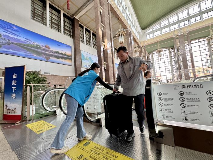 他们分散在站台、安检处、重点旅客服务岗等关键点位,从线路答疑到协助购票,从行李搬运到开辟“绿色通道”,用千余次重复的耐心服务,化解旅客的出行难题。
