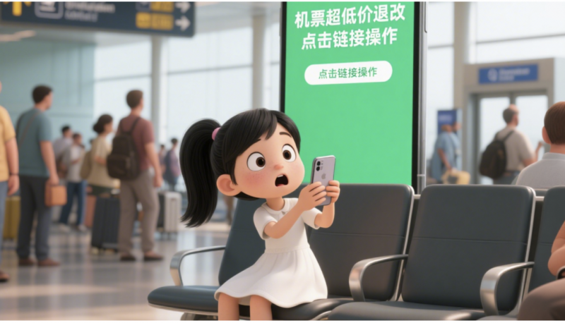 “您预订的航班因机械故障取消,仅剩最后2个免费改签名额,1小时内不办理就无法安排后续行程”,不法分子用“时间紧迫”“影响出行”的话术,让旅客在焦虑中失去判断力,乖乖听从指挥。