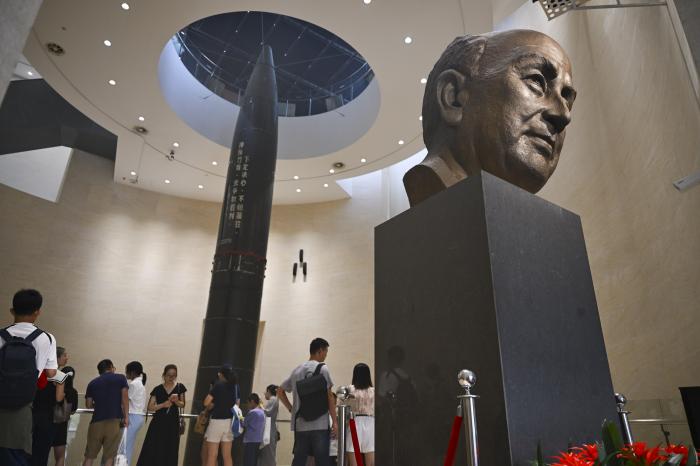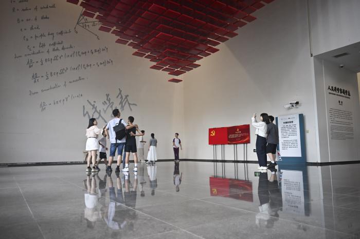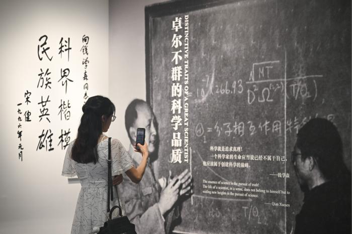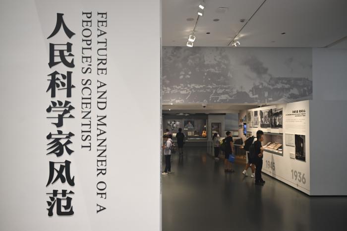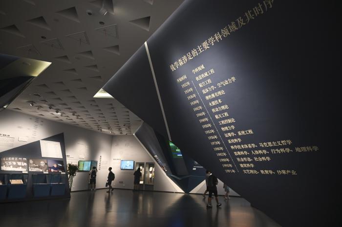 馆内基本展览分为中国航天事业奠基人、科学技术前沿的开拓者、人民科学家风范和战略科学家的成功之道四个部分,收藏保存着6.2万余件/套钱学森珍贵文献、手稿、照片和实物等。10月6日,观众在上海交通大学钱学森图书馆参观。新华社记者 陈浩明 摄