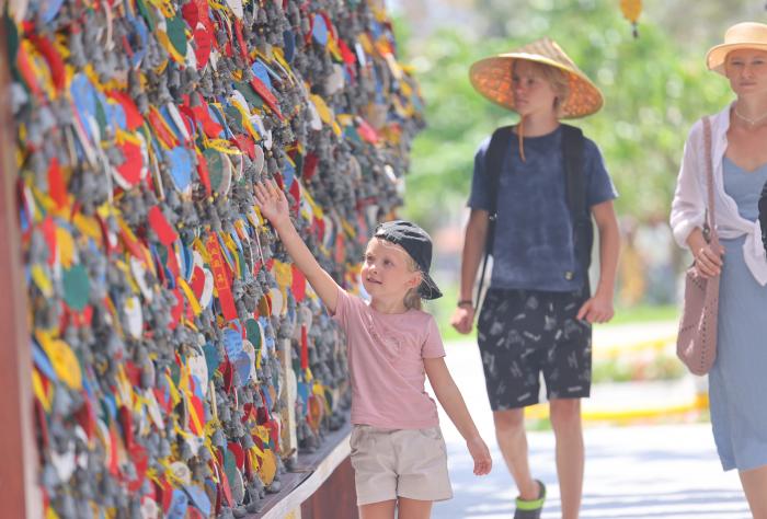 10月7日,游客在海南三亚南山文化旅游区游览。新华社发(陈文武摄)