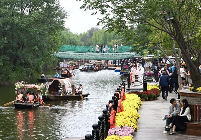 10月7日,游客在河南省开封市万岁山武侠城游玩。新华社记者 郝源 摄