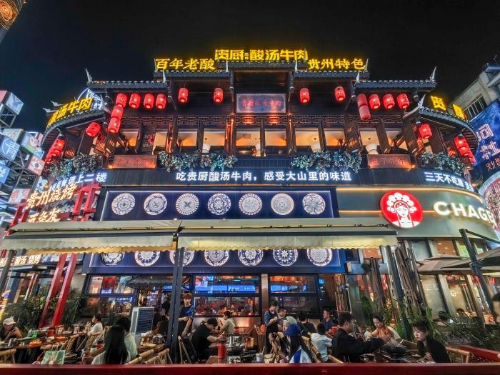 10月7日晚,人们在贵州省贵阳市青云市集品尝美食。新华社发(龙建睿摄)