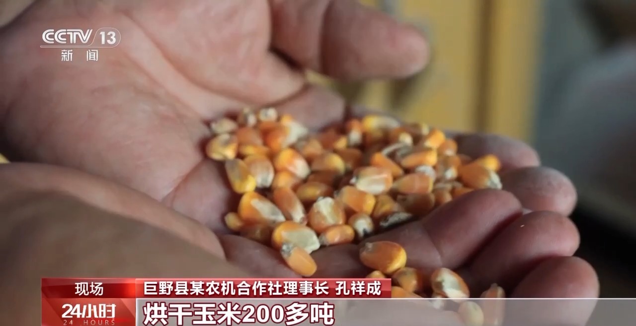 巨野县某农机合作社理事长 孔祥成:玉米收获后,直接进入烘干塔进行烘干,目前每天能够收获玉米500多亩,烘干玉米200多吨。