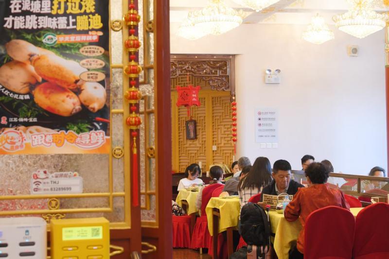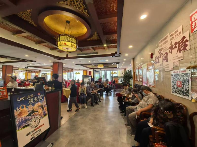 “鲁菜泰斗”同和居的热度同样惊人,葱烧海参、三不粘等镇店菜吸引食客慕名而来,假期前三日包间订满,中秋节当天月坛总店排队近百桌。为应对客流高峰,员工们提前一小时到岗备餐,错峰时段全员值守,只为让食客及时尝到正宗鲁味。而在“八大春之首”的同春园,松鼠桂鱼与清炖蟹粉狮子头的香气里,藏着老北京的聚会记忆,已近花甲的宋阿姨带着老同学和孙辈来赴约:“这是我们延续十几年的国庆传统,得让孩子尝尝老辈人的味道。”