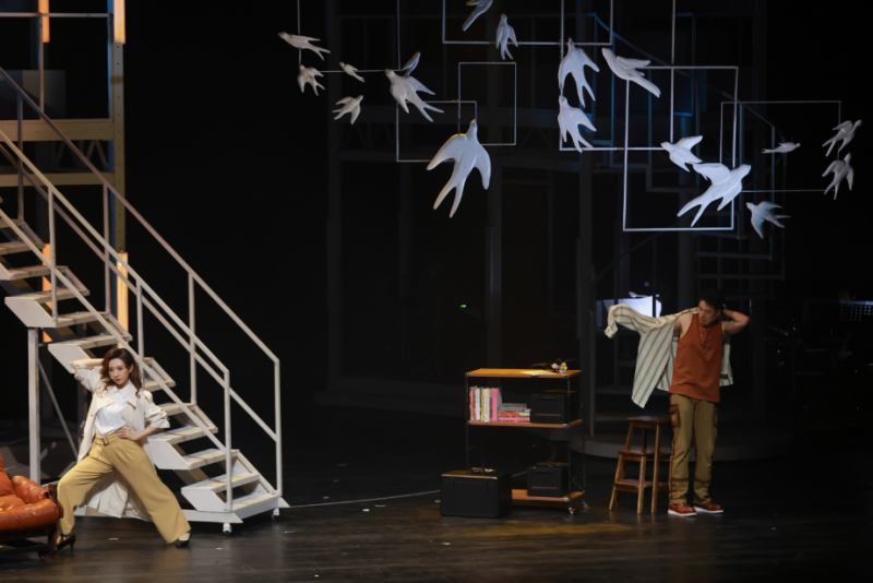 此外,全剧在音乐创作上将爵士乐与百老汇经典音乐剧创作手法相融合,同时注入流行、民谣等多元音乐元素,打造出既复古又现代的音乐语汇。主题曲《漏了一拍的心跳》以真挚的情感和优美的旋律,成为演出中最动人的音乐记忆。而《檐下三万里》则将北京雨燕的意象与角色命运相结合,展现出深厚的人文关怀。