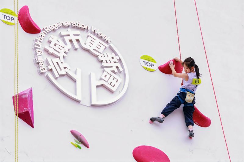 10月8日,首都高等学校第2届攀岩锦标赛在北京城市更新周主会场中关村西区大融城开赛。北京青年报记者了解到,此次比赛场地原为北京城市更新论坛开幕式的投影墙,后加装岩点变身为北京户外最高攀岩墙墙体——高达21米,比赛主题为攀登“中关之巅”,即指攀岩比赛本身,更意味着在中关村这片创新创业的热土上需要勇攀高峰的精神。