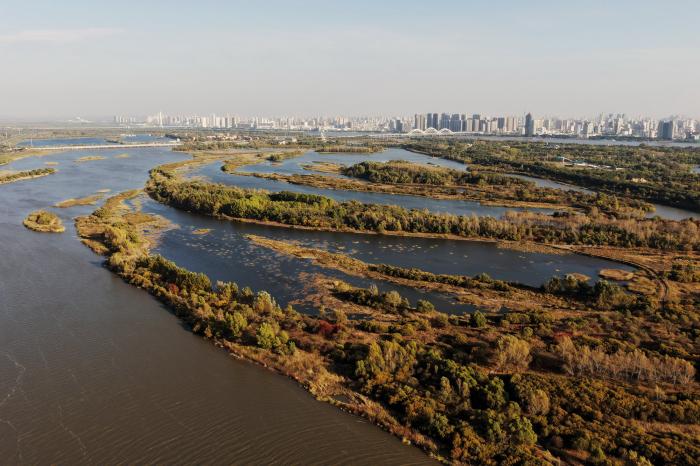 10月的哈尔滨,湿地秋意醉人,一幅生态与人文交相辉映的美丽画卷沿江展开。