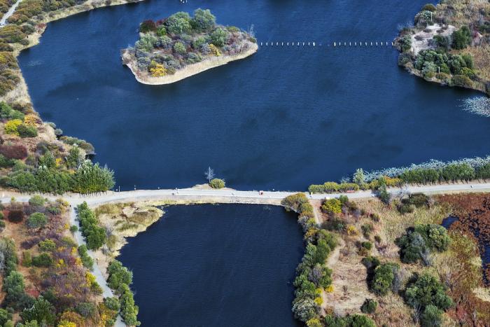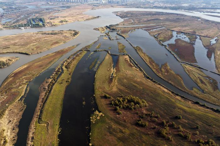 这是10月7日拍摄的哈尔滨太阳岛国家湿地公园景色(无人机照片)。