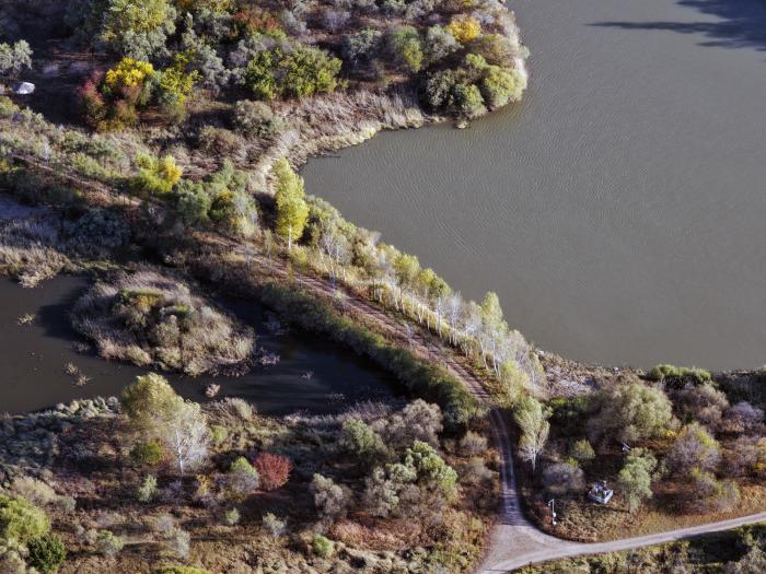 这是10月7日拍摄的哈尔滨金河湾湿地公园景色(无人机照片)。