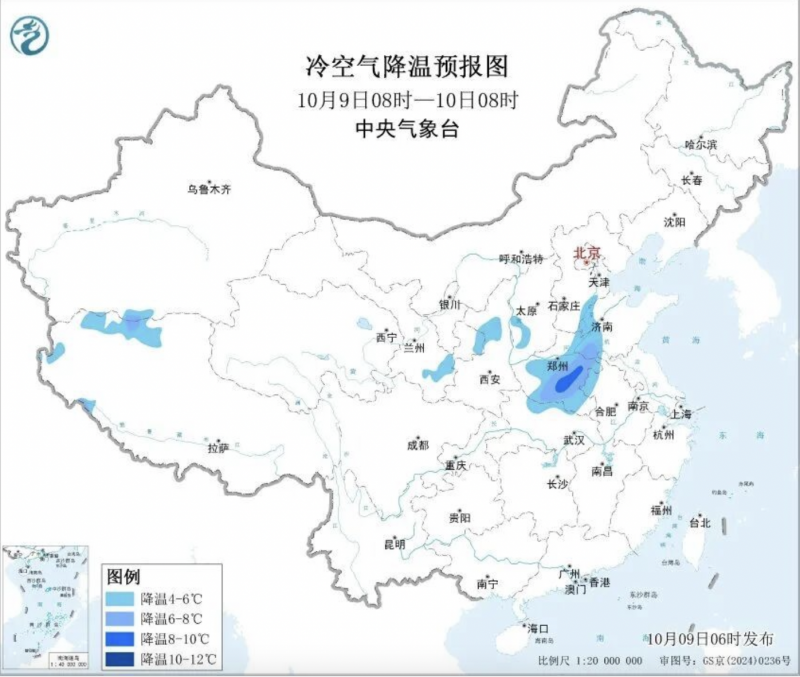 中央气象台预报,受冷空气影响,9日华北、黄淮等地气温先后下降4~8℃,局地降温10℃以上。多地气温将创下立秋之后的新低,这种寒凉程度同期少见。