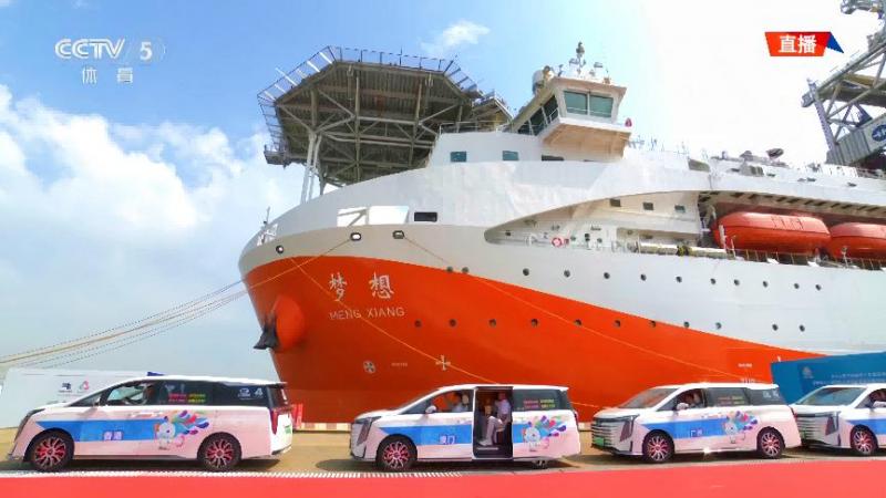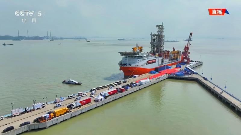 火种采集仪式在广州南沙科考码头“梦想”号大洋钻探船旁举行