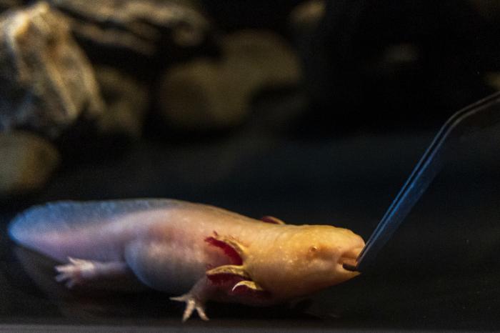 近日,巴西里约热内卢生物公园新开设的“钝口螈王国”展区向公众开放,展示包括8只由巴西联邦公路警察打击野生动物贩运行动中救助的钝口螈在内的22只个体。