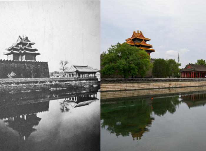 百年光影流转,变的是岁月风貌,不变的是文明传承的力量。拼版照片:左图为20世纪初拍摄的角楼(故宫博物院供图);右图为2025年10月10日拍摄的角楼(新华社记者金良快摄)。新华社发