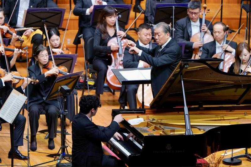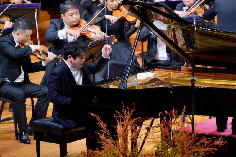 当晚的音乐会上,余隆执棒中国爱乐乐团,与钢琴家张昊辰默契配合,让柴科夫斯基《第一钢琴协奏曲》焕发出新的生命力。张昊辰的演奏既展现了雷霆万钧的技术掌控,又不失诗意的细腻刻画。在疾速乐段,他的手指在琴键上飞舞如风;在抒情段落,他又能营造出令人屏息的静谧时刻。这种刚柔并济的艺术处理,让这部经典作品在当代舞台上绽放出全新的光彩。一曲结束,在观众持续的掌声和欢呼声中,张昊辰返场演绎了一曲经典曲目《彩云追月》,其演奏如行云流水般,悠扬旋律沁人心脾,将现场氛围推向又一高潮。