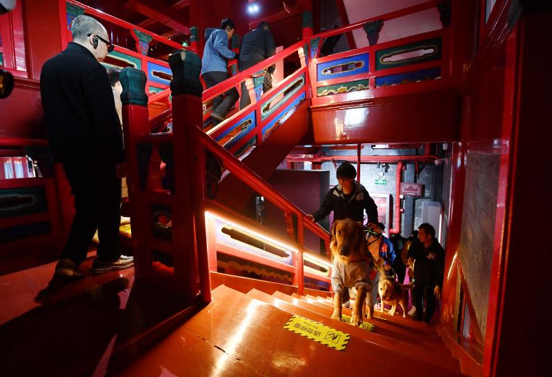 12只身着红色“工作服”的北京导盲犬,与它们的使用者及视障人士代表早早聚集在正阳门箭楼北门前,满怀期待地开启旅程。导盲犬的集体亮相更是吸引了不少游客驻足,大家好奇地询问导盲犬的工作模式,亲眼见证视障者与导盲犬之间的默契配合,也进一步理解了导盲犬对视障人士出行的重要性。