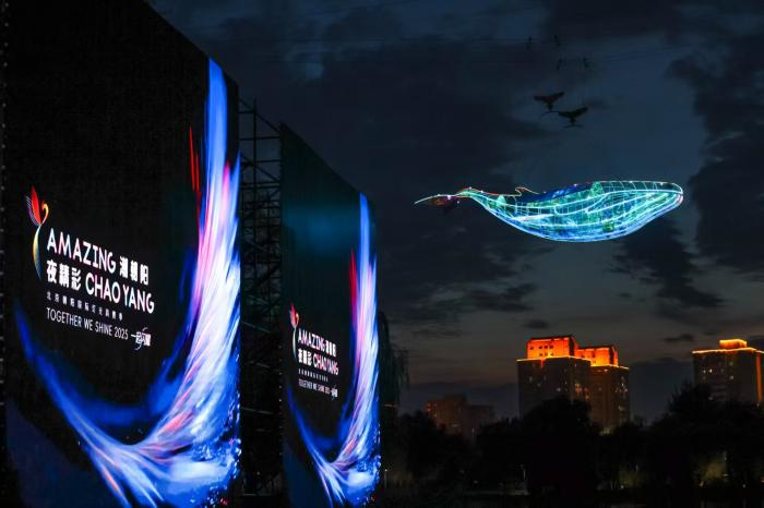 10月11日晚,2025北京朝阳国际灯光消费季在朝阳公园贝壳剧场启动。