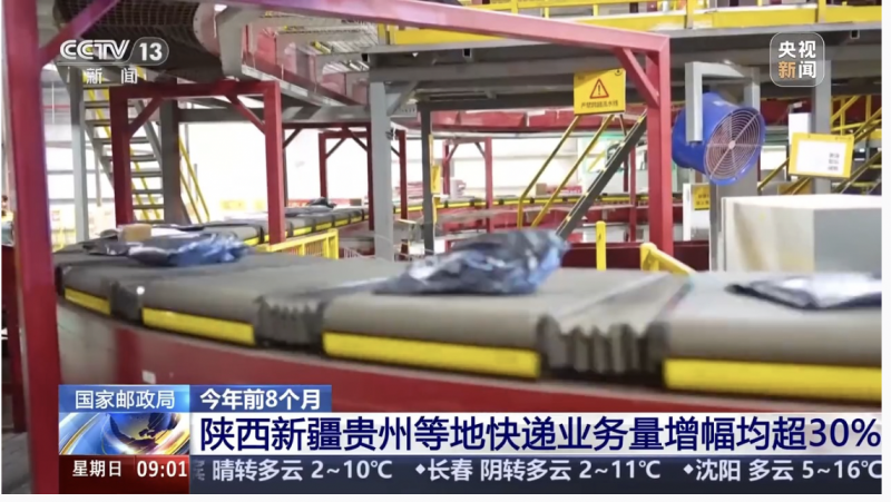 今年以来,我国通过加快推进中西部地区的市级分拨中心、县级配送中心和乡镇服务站的标准化建设,快递服务能力得到全面提升。前8个月,陕西、新疆、贵州、青海等地快递业务量增幅均超过30%。