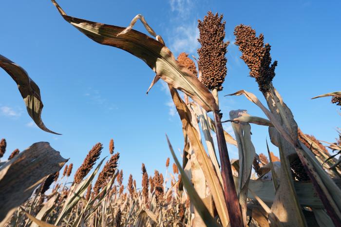 2025年,北大荒农垦集团有限公司秋收总面积达4677.20万亩。截至10月10日,已收获3969.03万亩,完成84.86%。10月11日在位于黑龙江省肇东市的北大荒集团四方山农场有限公司拍摄的耕地里成熟的高粱。