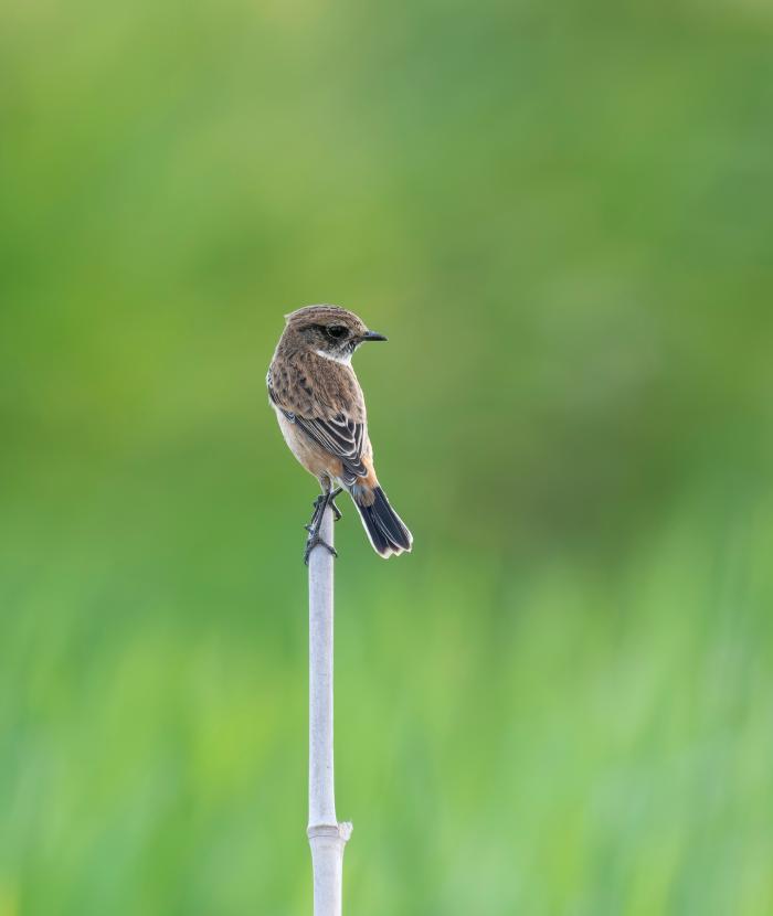 福建地处东亚-澳大利西亚候鸟迁徙通道,是生物多样性高度丰富的省份,每年有大量候鸟在福建省繁殖、越冬和迁徙停歇。在福州白沙镇孔元村,一只黑喉石?在杆头停留(10月7日摄)。