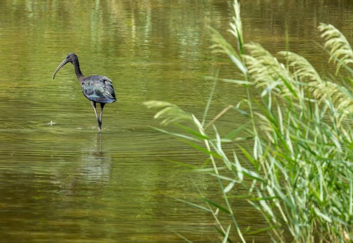 在福州长乐闽江河口湿地,一只鹮鸟在觅食(10月4日摄)。