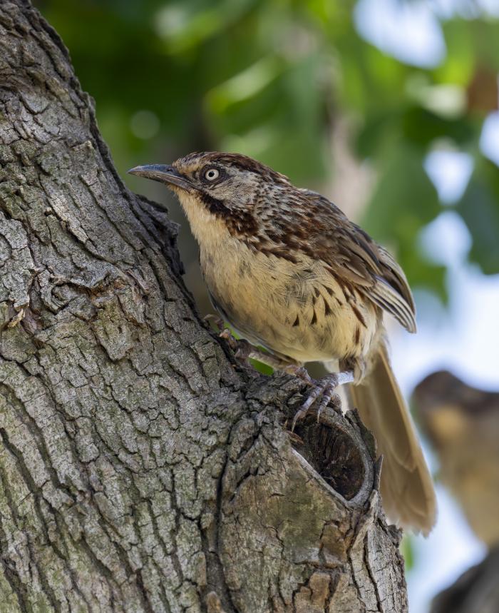 在厦门集美区的龙舟池畔,一只矛纹草鹛在树枝上觅食(9月9日摄)。