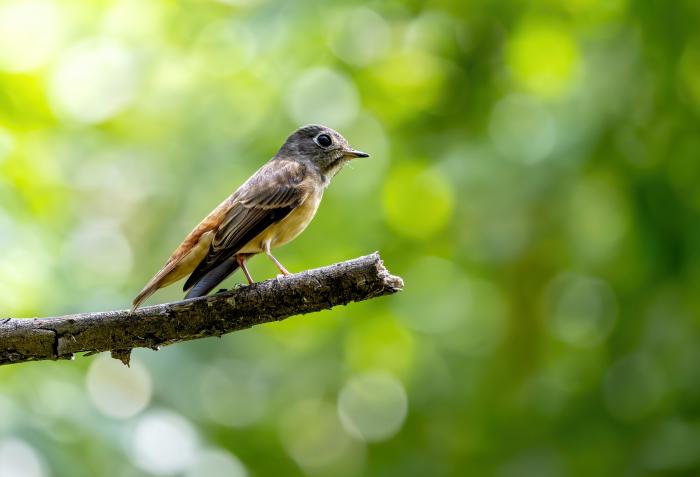 在福州金牛山公园,一只棕尾褐鹟在枝头上停歇(4月22日摄)。