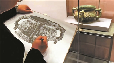 虽然大克鼎纹饰复杂,但完成之后,李鹏却认为它并不难画。“其实画画不以画面的复杂程度来判断难易程度,而是以最终的整体效果划分难度级别。我们只能说花纹越多越繁杂,但不代表花纹越多越难画。”在李鹏绘制过的文物作品中,他认为瓷器类文物的难度系数最大。“因为用钢笔画白色的东西,它是真的不好画。”