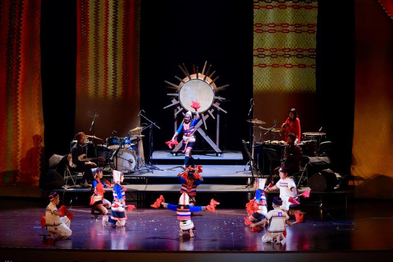 憨态可掬的大象,神秘的海洋鱼群,嘹亮的民歌将基诺族古老的文化带到了观众面前。10月12日晚,一场将云南深山原始生命力融合跨越时空艺术想象力的演出,打动了所有的观众。作为第二十八届北京国际音乐节的重磅演出之一,由普利策音乐奖得主、华人作曲家杜韵倾力创作,北京国际音乐节与美国林肯中心联合委约的音乐剧场作品《刻在森林的海》在北京喜剧院世界首演。来自云南西双版纳的非遗项目基诺族大鼓舞传承人何桂英,带领八位基诺族少年,在世界的舞台上敲响大山里特有的声音。