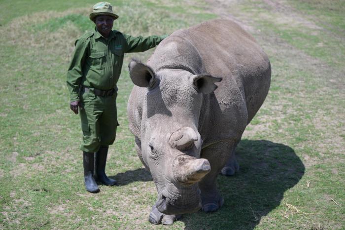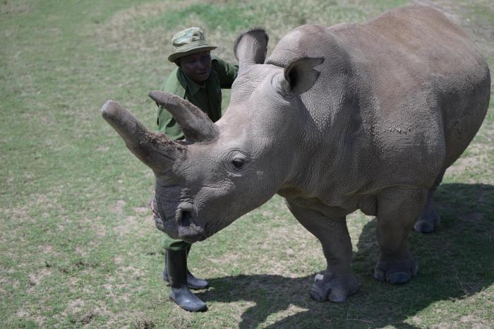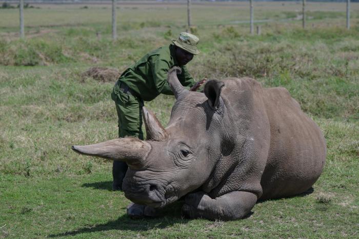 肯尼亚奥尔佩杰塔自然保护区的“娜金”及其女儿“法图”是全世界仅存的两头北方白犀牛,它们均为雌性。最后一头雄性北方白犀牛“苏丹”已于2018年3月死亡。