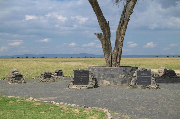这是10月7日在肯尼亚中部莱基皮亚郡奥尔佩杰塔自然保护区拍摄的过世犀牛的纪念碑。
