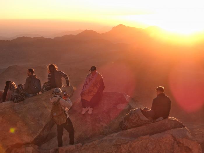 10月11日,游客在埃及西奈半岛西奈山观赏日出。