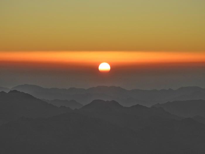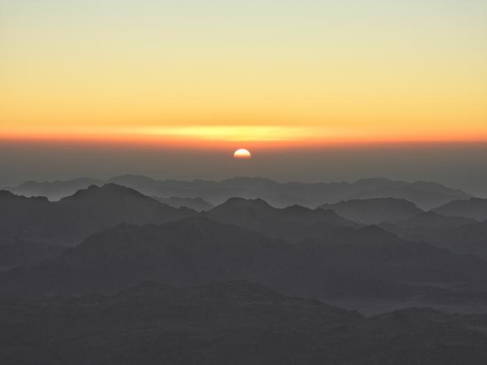 这是10月11日在埃及西奈半岛西奈山拍摄的日出景色。
