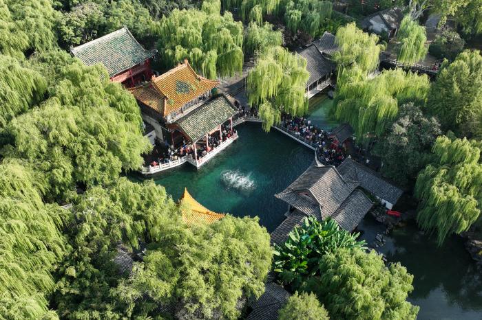 10月13日拍摄的山东省济南市趵突泉公园(无人机照片)。新华社发(郝鑫城摄)