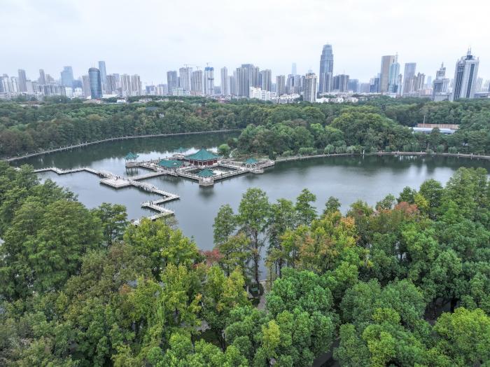 10月13日拍摄的湖北省武汉市东湖风景区景色(无人机照片)。新华社发(赵军摄)