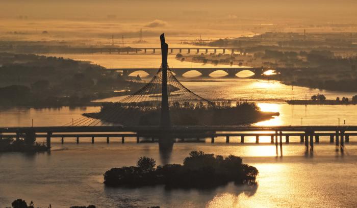 这是10月13日拍摄的石家庄滹沱河景色(无人机照片)。新华社发(陈其保摄)
