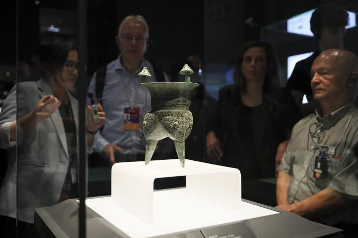 10月13日,嘉宾在上海博物馆东馆青铜馆参观。新华社记者 王翔 摄