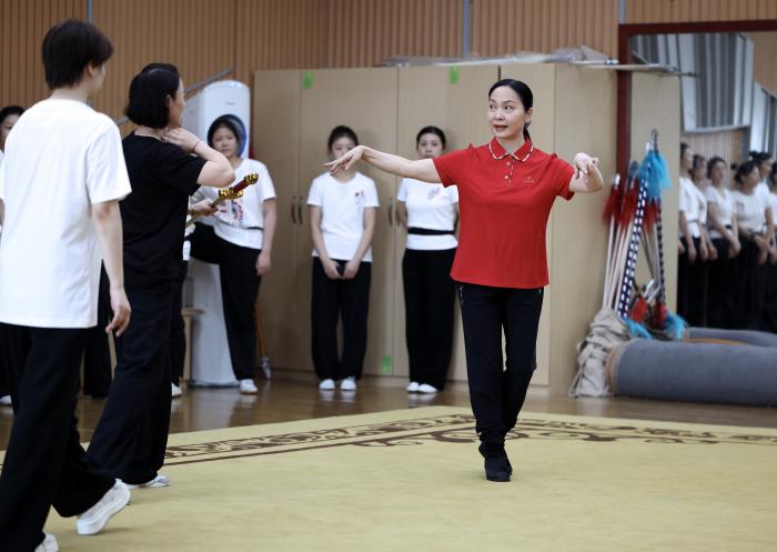 10月12日,二度“梅花奖”获得者、全国三八红旗手陈美兰(右一)在指导演员排练剧目。新华社发(兰红光摄)