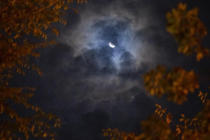 10月14日凌晨在黑龙江省佳木斯市富锦市拍摄的木星伴弦月。新华社发(曲玉宝摄)