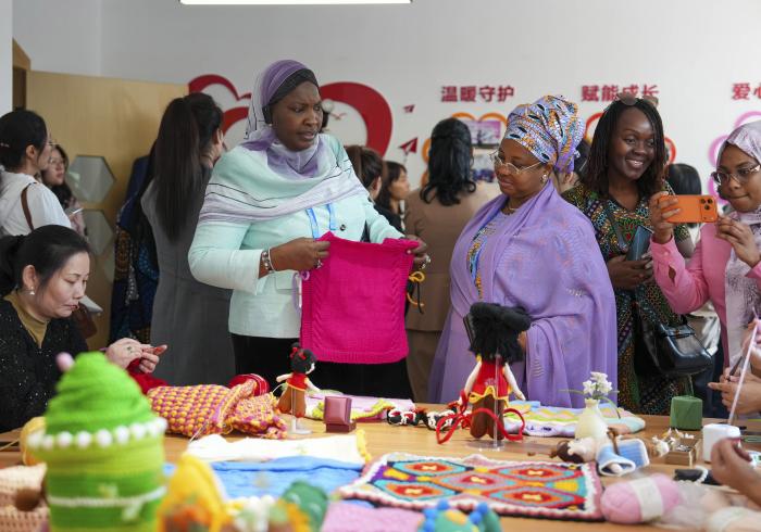 10月14日,全球妇女峰会参会嘉宾在北京市顺义区妇女儿童社会服务中心参访。