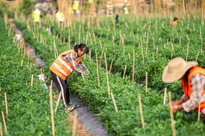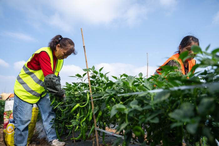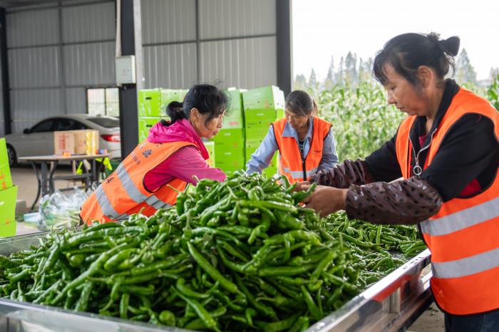 截至目前,该县秋冬套种蔬菜种植面积达18万亩,预计年总产量超100万吨。10月14日,在南县华阁镇新安村,村民在整理刚采摘的辣椒。