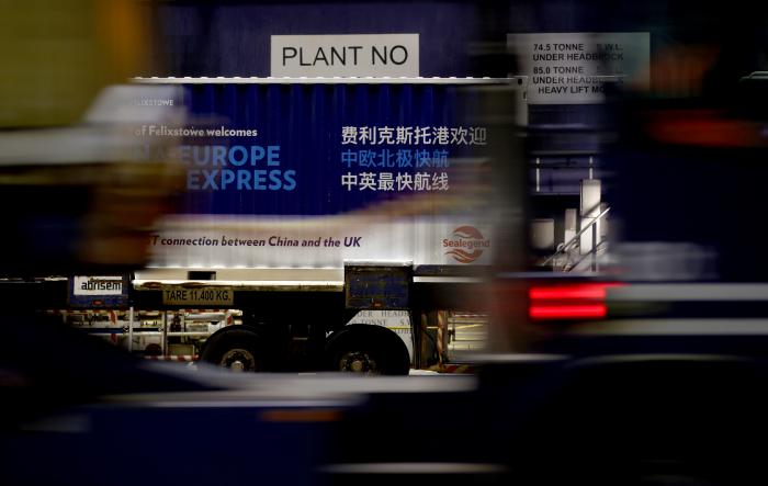 10月13日,在英国费利克斯托港,中欧北极快航航线首艘货船驶入码头。