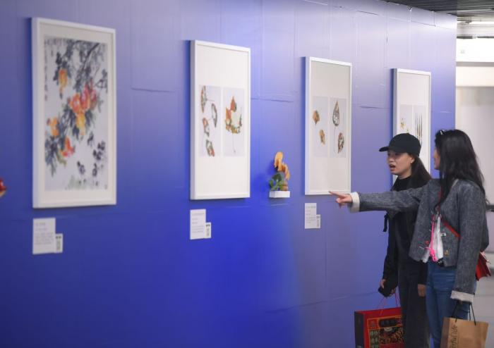 步入京港地铁14号线枣营站A口通道,四十余件由口足书画家、视障摄影师以及北京联合大学特殊教育学院艺术设计系听障学生创作的绘画、摄影及非遗手工作品精彩亮相。